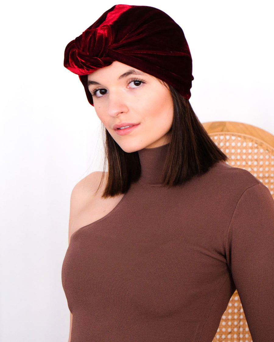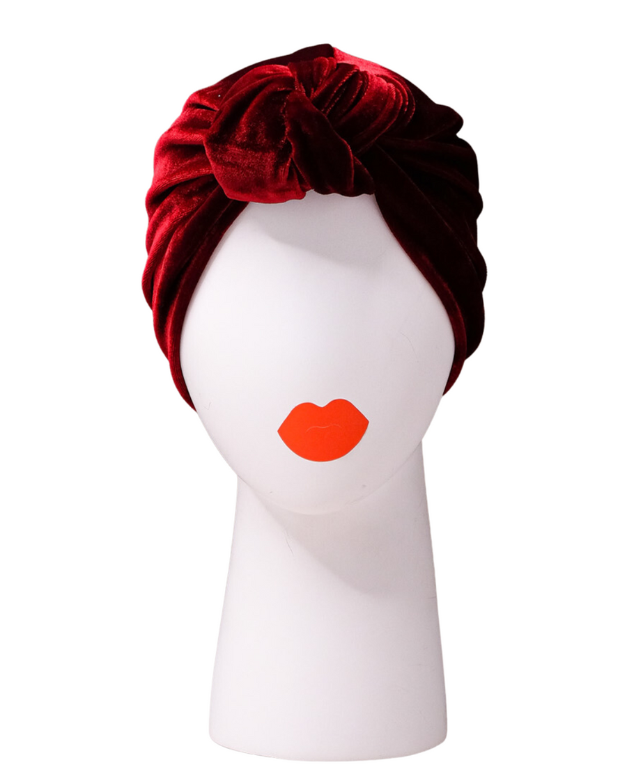 Turban cap ROSIE , velvet Ruby